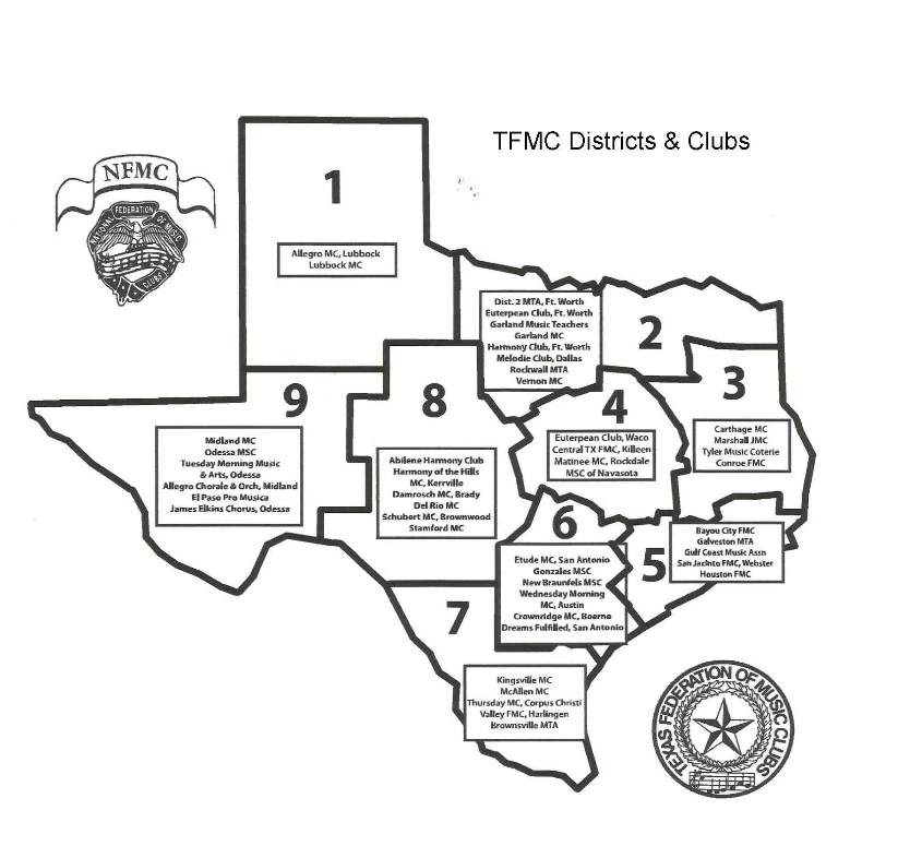 TFMC Districts and Clubs Find Nearby Meetings Contact any of our District or Club Presidents to find out about meetings near you. To find out about festivals near you, contact a festival chairman or our TFMC State Festival Chair. .